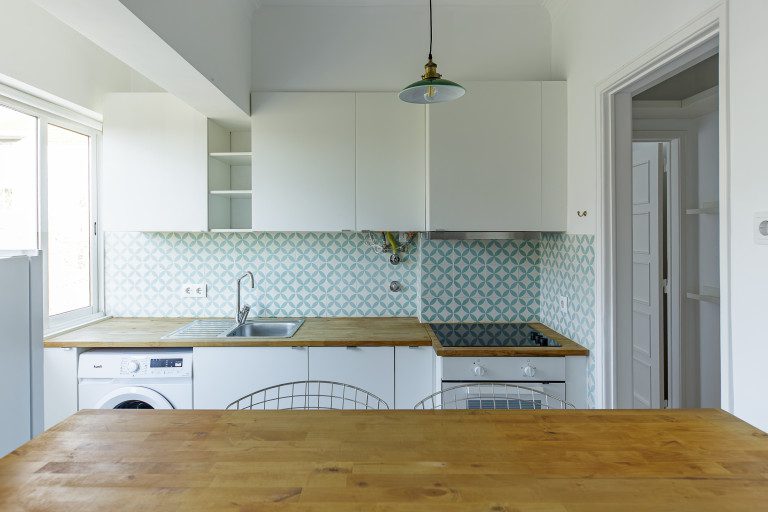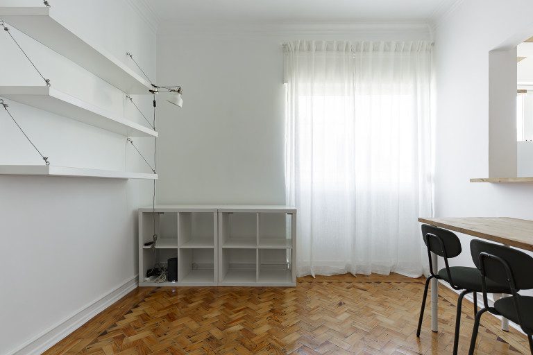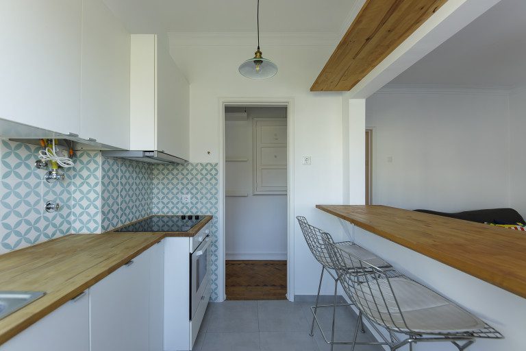 Com um layout inteligente, o apartamento foi totalmente renovado para criar um espaço fluido, funcional e visualmente leve. A zona social desenvolve-se em open space, onde sala e cozinha convivem num ambiente contínuo, pensado para o dia a dia.