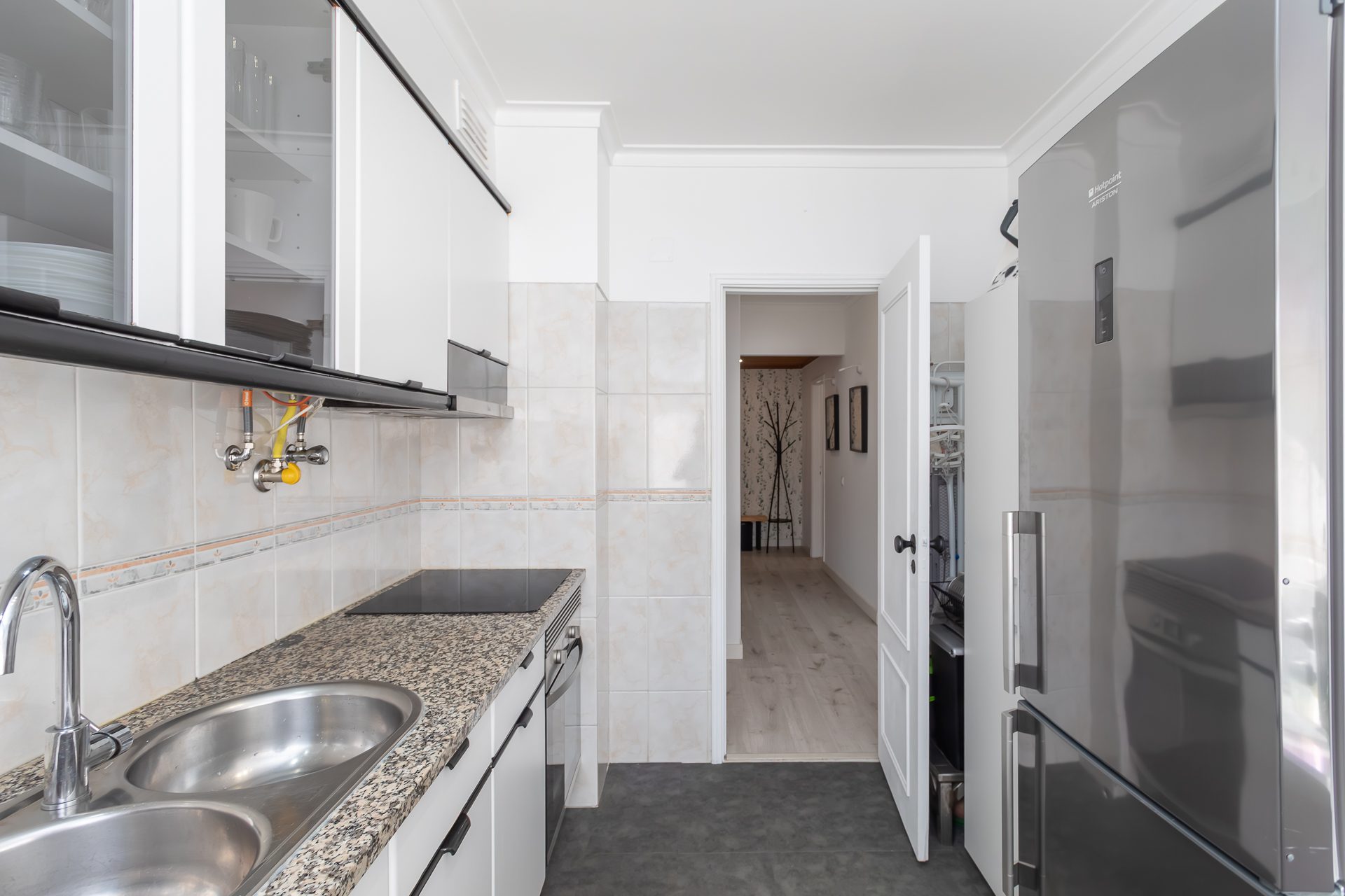 A renovação recente trouxe uma nova funcionalidade aos espaços. A cozinha apresenta-se moderna e eficiente, equipada com placa, forno, exaustor e esquentador ventilado de elevada eficiência energética. Cada detalhe foi pensado para tornar o dia a dia mais simples e confortável.