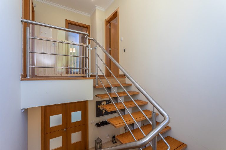 A moradia distribui-se por dois pisos, com uma organização perfeita entre as zonas sociais e de descanso.