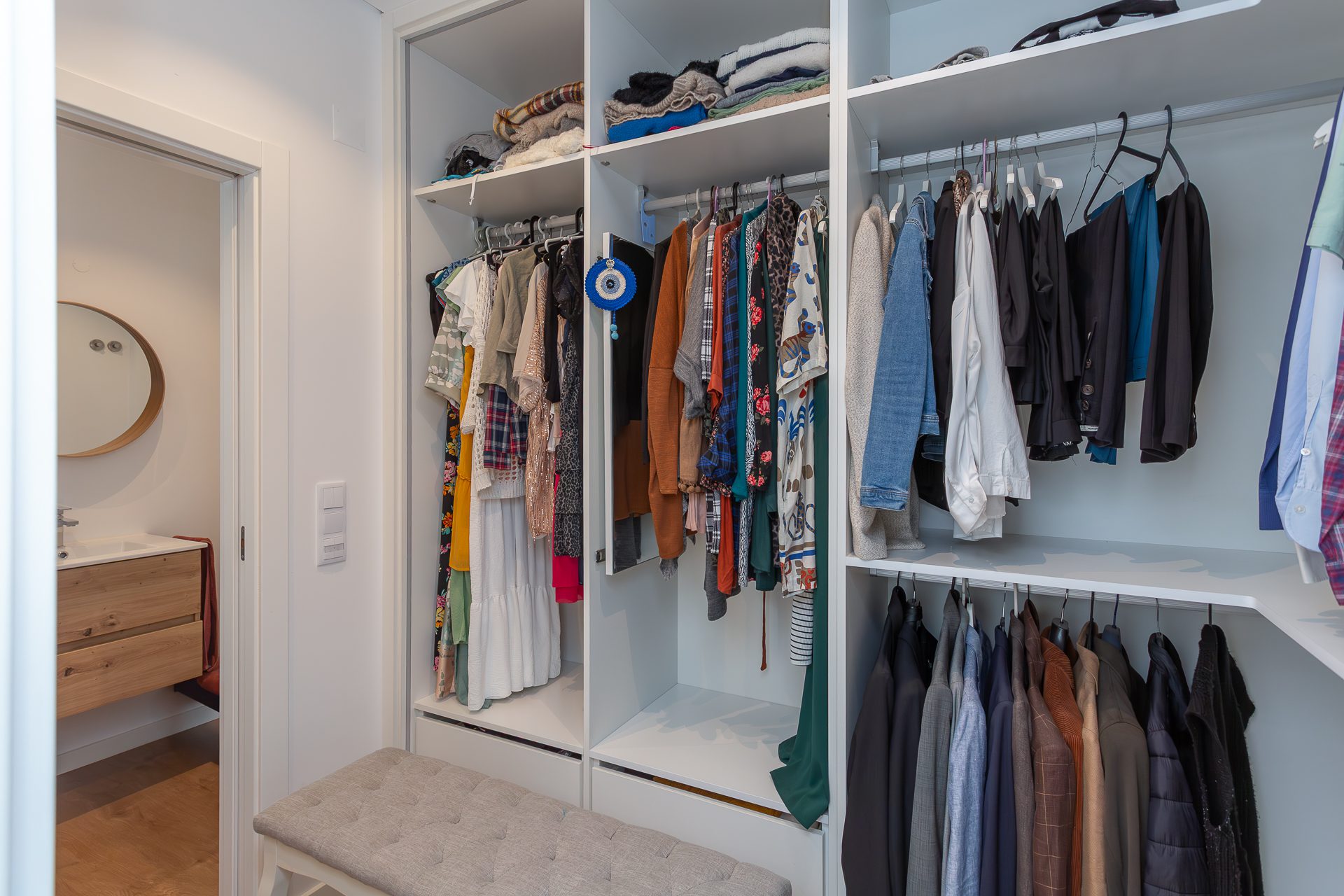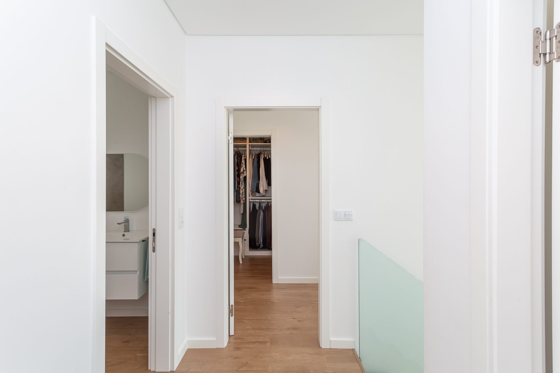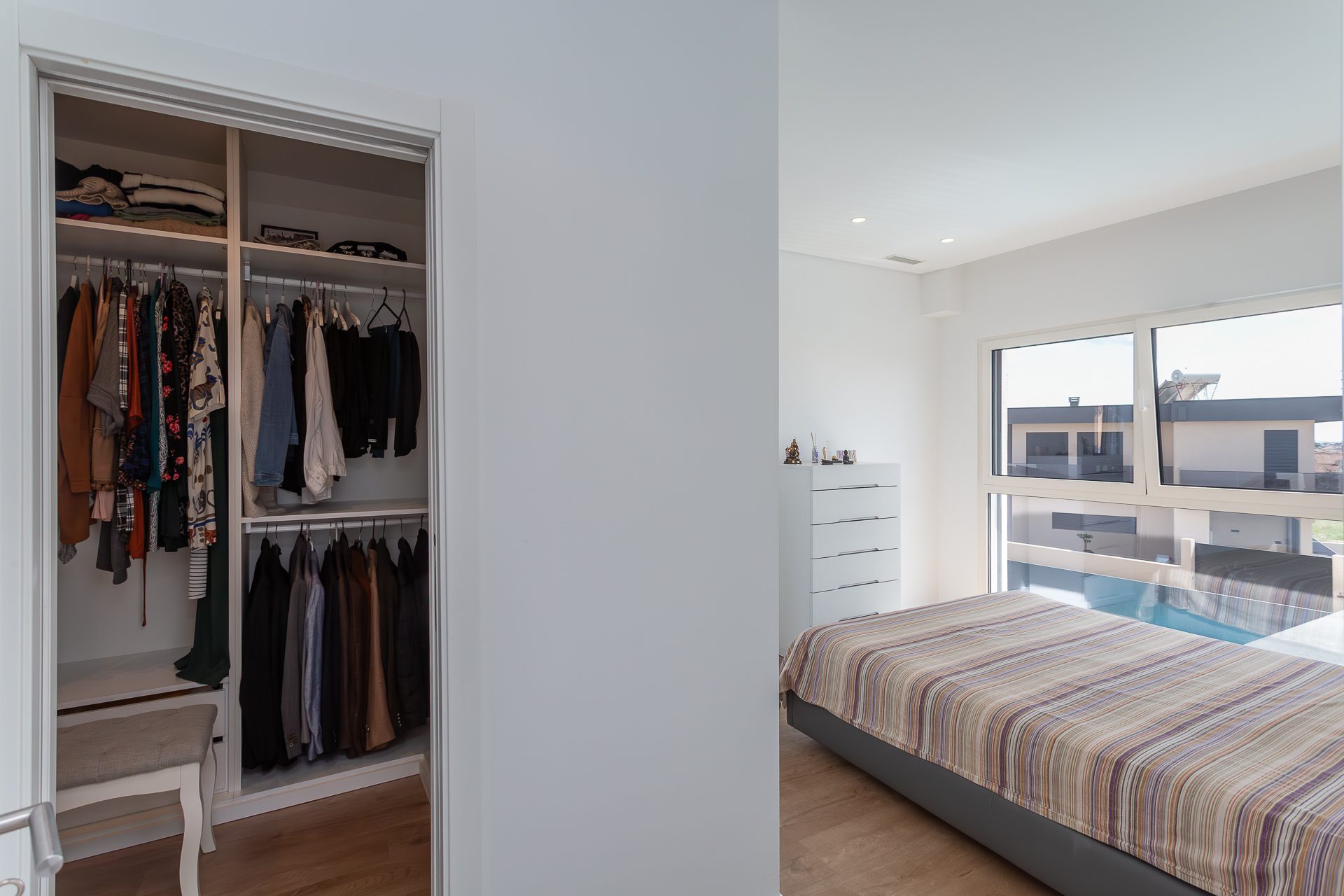 No piso superior, a zona privada é composta por três quartos. A suíte principal oferece conforto acrescido, com closet, casa de banho privativa e total privacidade. Os dois quartos adicionais, espaçosos e luminosos, partilham uma casa de banho moderna. Todos contam com roupeiros embutidos, janelas amplas e acabamentos de elevada qualidade.