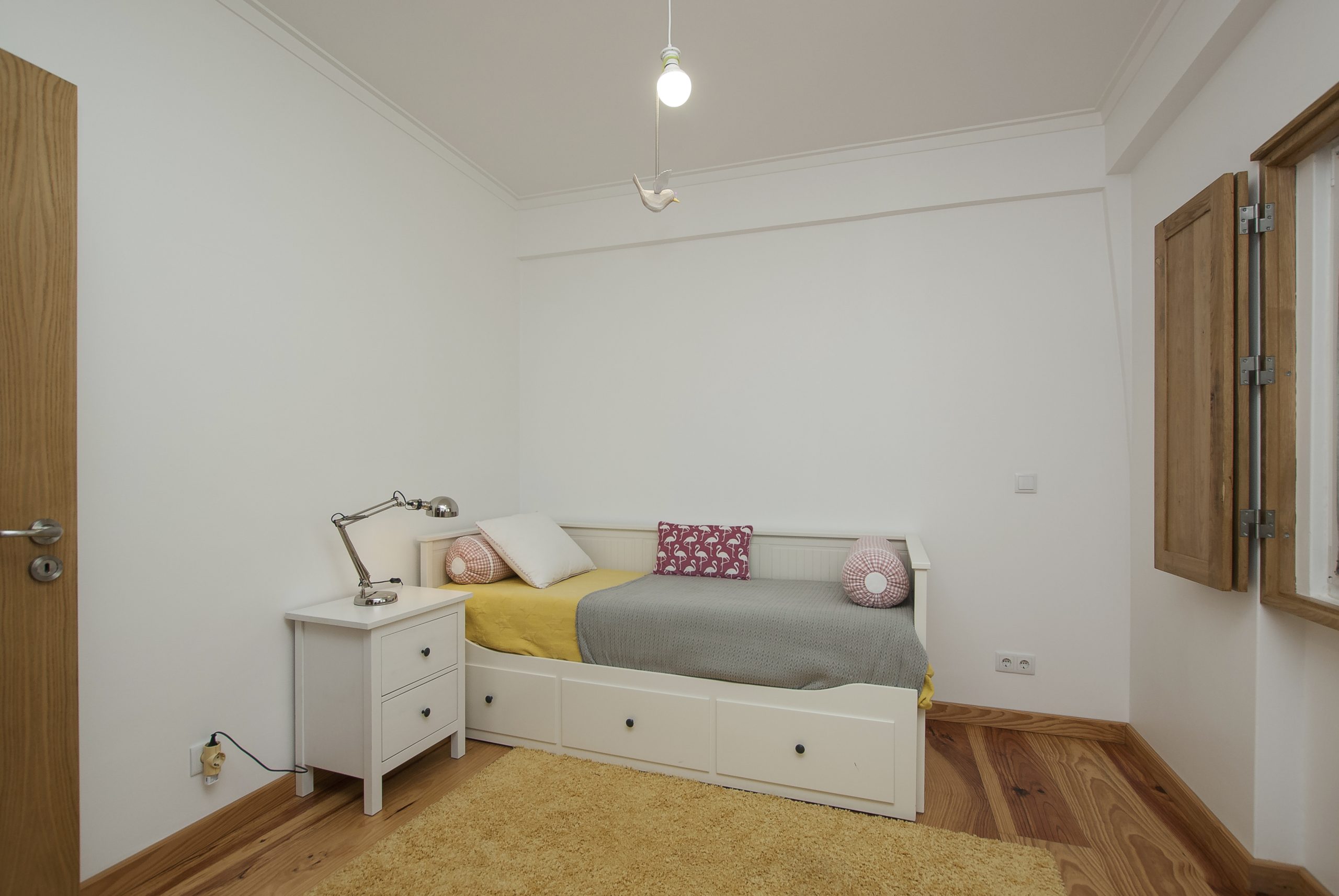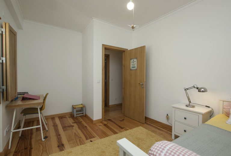 Os quartos foram concebidos como verdadeiros espaços de tranquilidade. Ambientes luminosos, proporções generosas e uma atmosfera serena criam o cenário ideal para descanso e privacidade. As casas de banho, revestidas com materiais contemporâneos em tons orgânicos e equipadas com sanitários suspensos e amplas zonas de duche, evocam o conforto de pequenos spas urbanos.