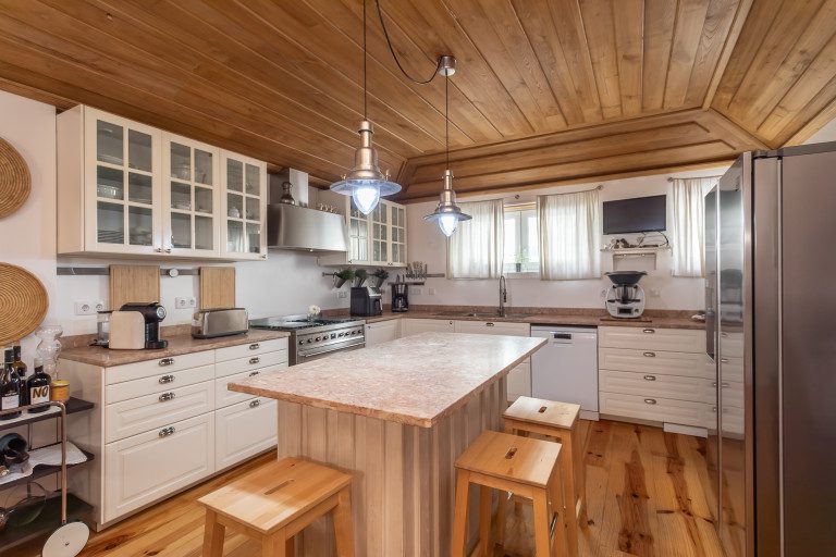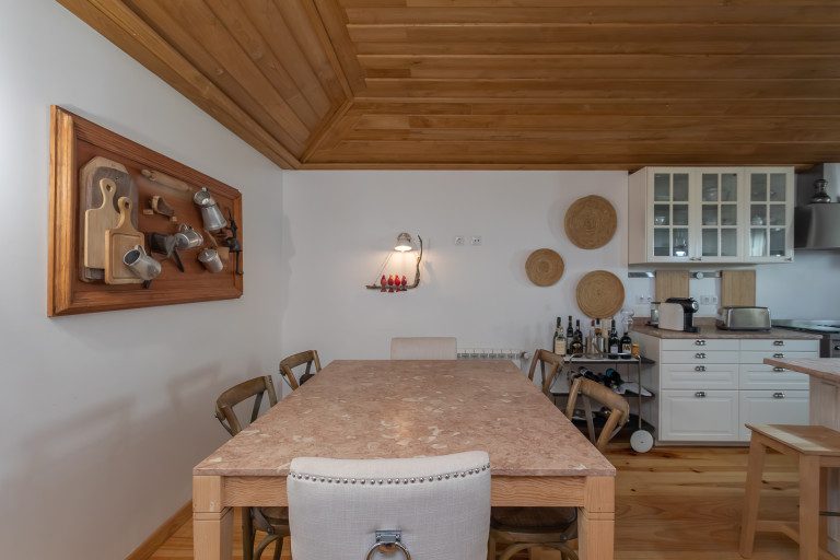 A zona social privilegia um conceito open space, onde sala de estar, sala de jantar e cozinha convivem em perfeita harmonia. A cozinha, contemporânea e minimalista, está totalmente equipada com eletrodomésticos de encastre de última geração, tornando cada momento — cozinhar, receber ou simplesmente partilhar — numa experiência natural e envolvente.