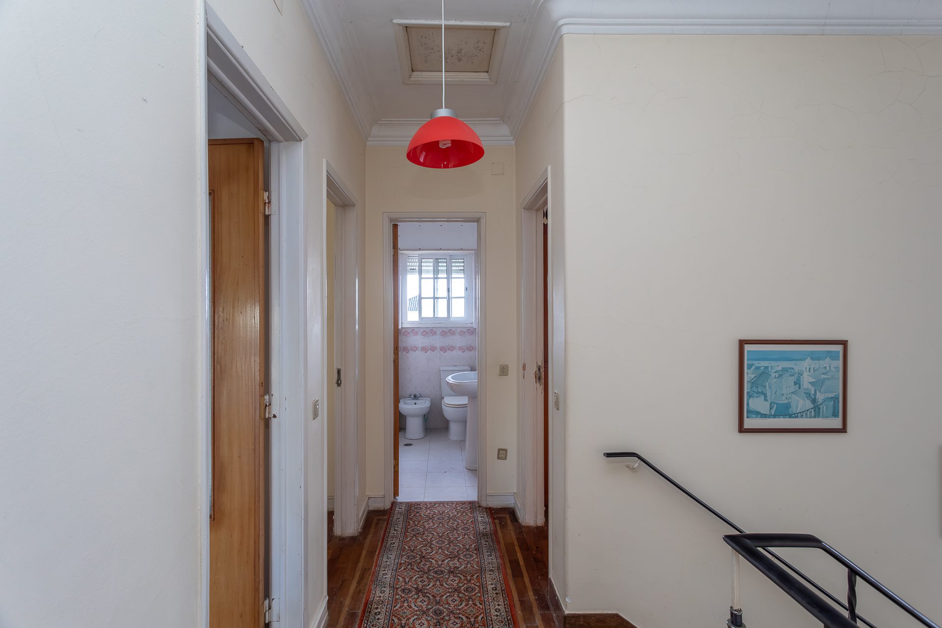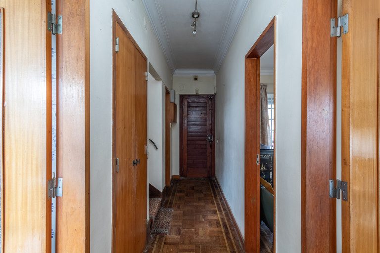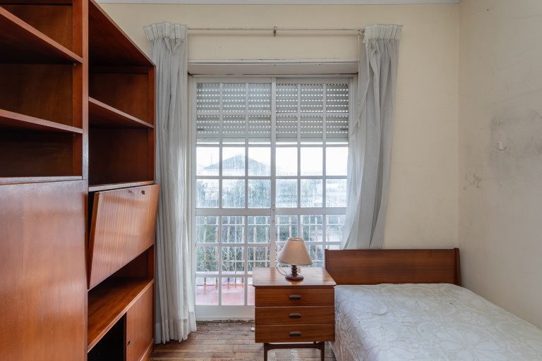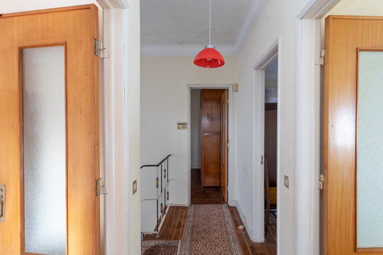No primeiro andar, a casa é dedicada ao descanso, com quatro quartos amplos que acompanham diferentes fases da vida: quartos para crianças, espaço para visitas, um escritório com luz e silêncio, ou simplesmente a liberdade de ter um quarto extra sem compromissos. A casa de banho completa nesta zona dá resposta à dinâmica familiar com naturalidade e funcionalidade.