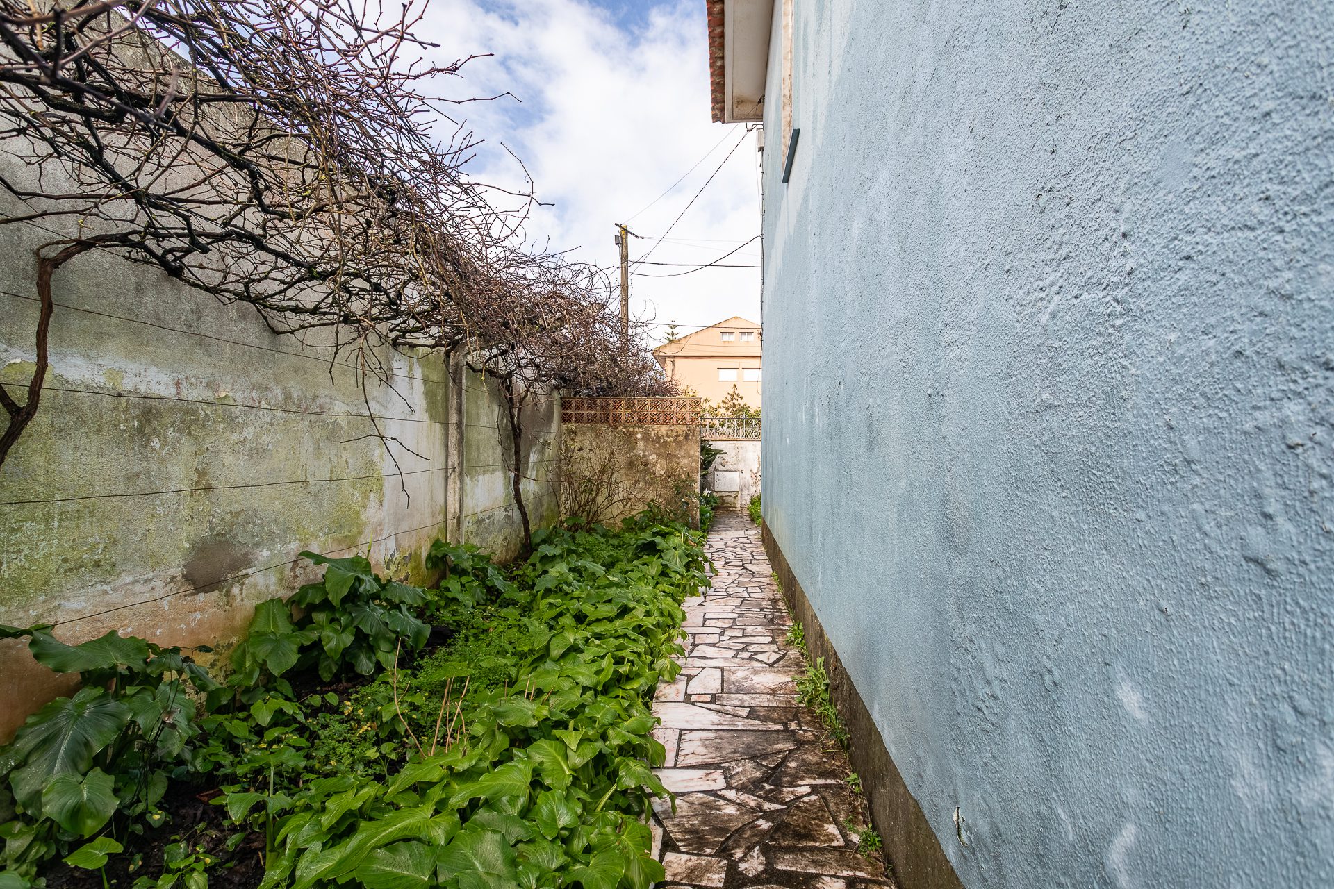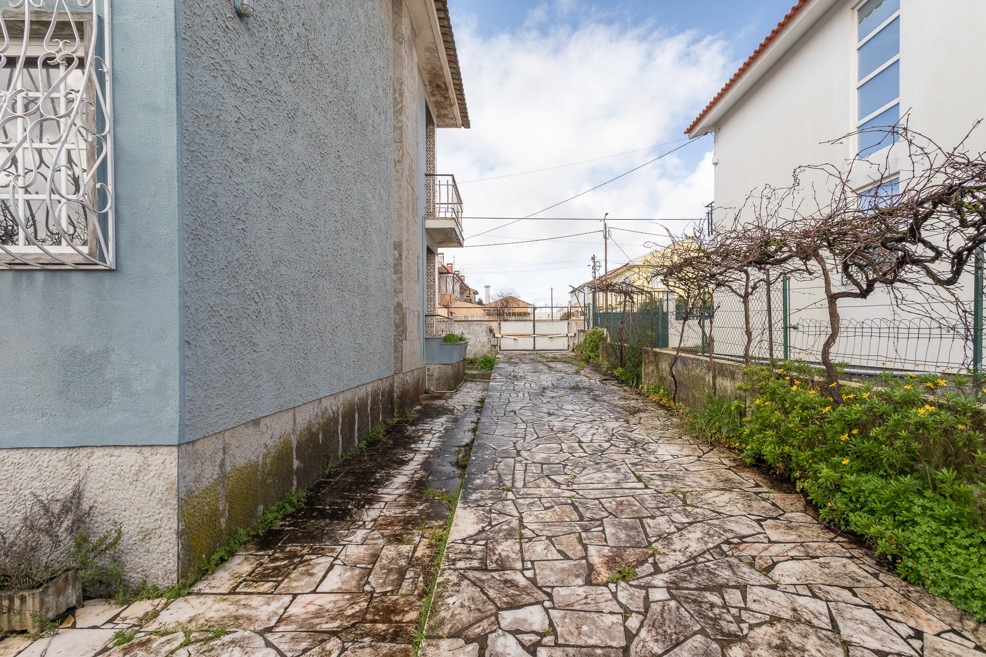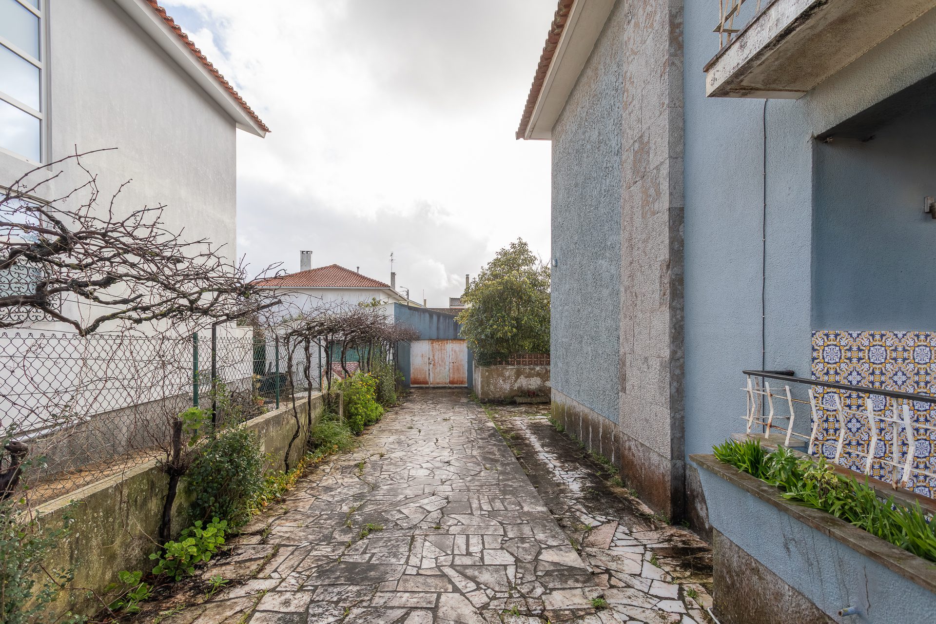 Mas é no exterior que esta moradia se distingue verdadeiramente. O logradouro privativo é amplo e raro nesta localização, oferecendo possibilidades que mudam a forma como se vive: um jardim com sombra e tempo, uma zona de refeições ao ar livre que se usa grande parte do ano, um espaço de lazer para brincar, ou até um projeto mais ambicioso que evolui com os anos. A garagem fechada acrescenta conforto, com estacionamento protegido e arrumação adicional, para que a casa respire por dentro.